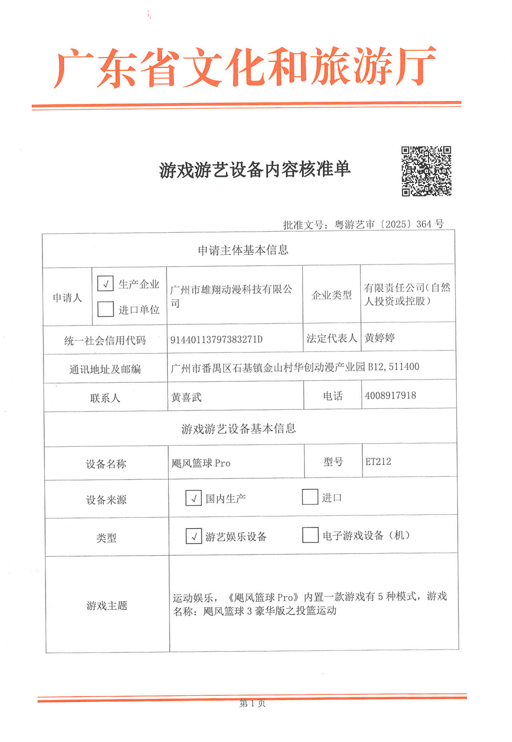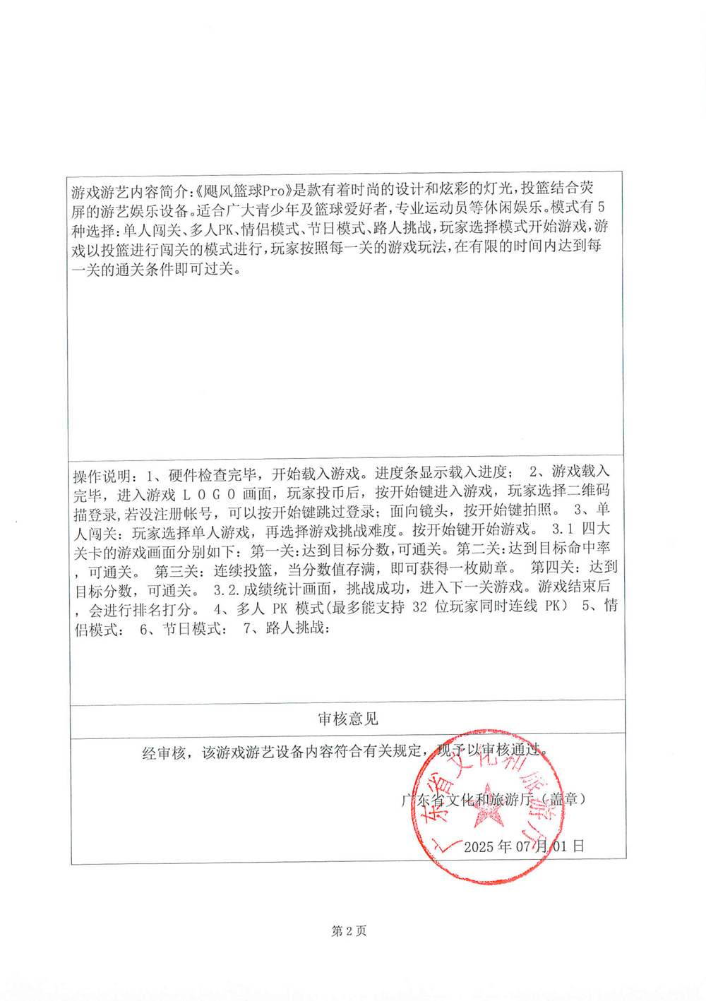 - 飓风篮球PRO 粤游艺审〔2025〕364号