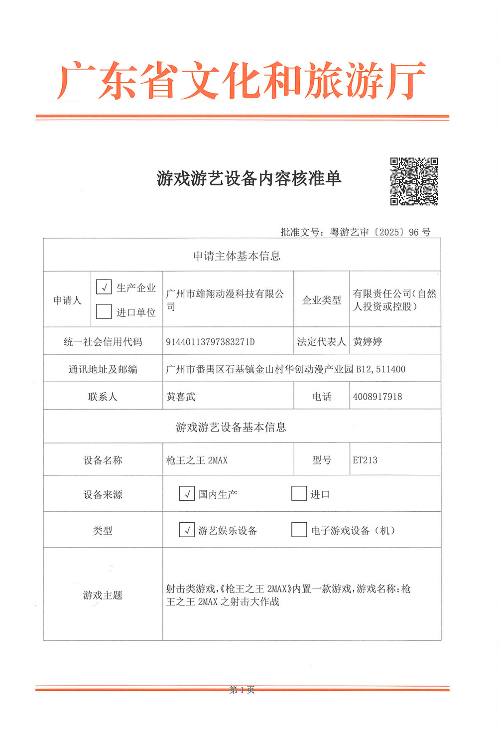 - 枪王之王2MAX-粤游戏审〔2025〕96号