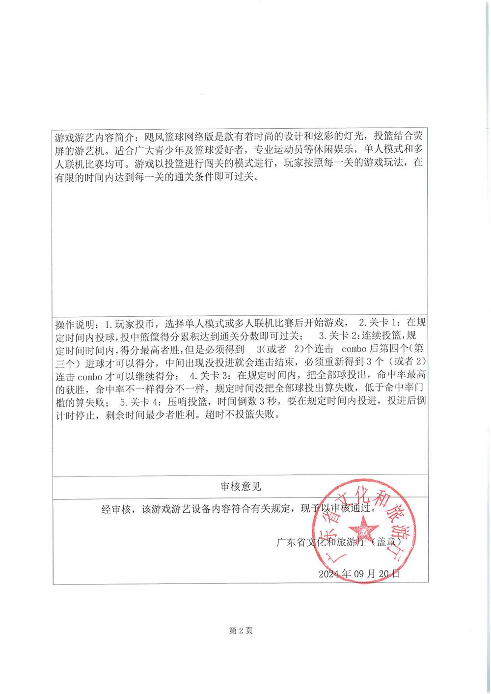 - 飓风篮球PRO 粤游艺审〔2025〕364号