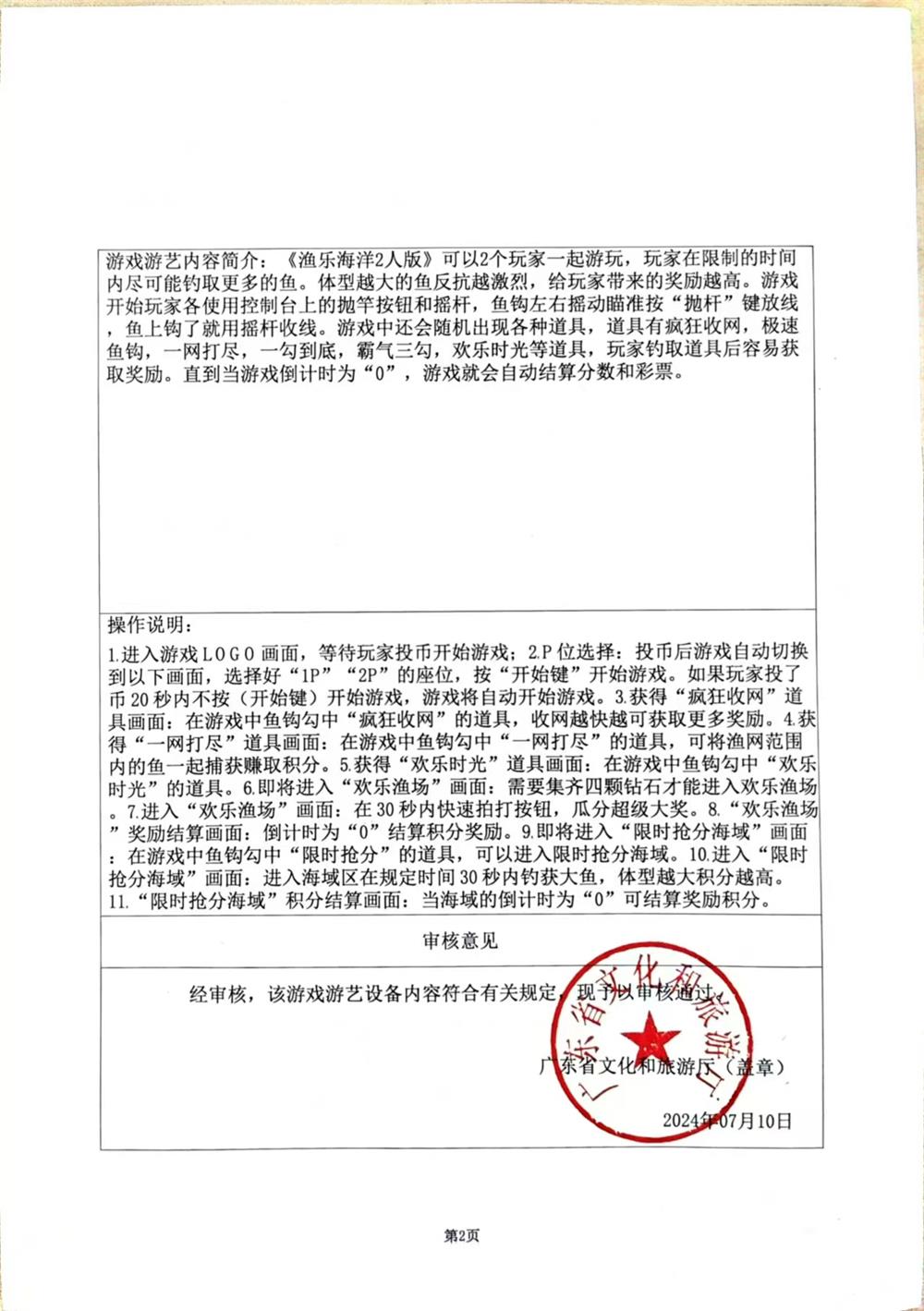 当前位置:首页 » 新闻资讯 > 准入机台 » 渔乐海洋2人版--粤游艺审(2024】382号