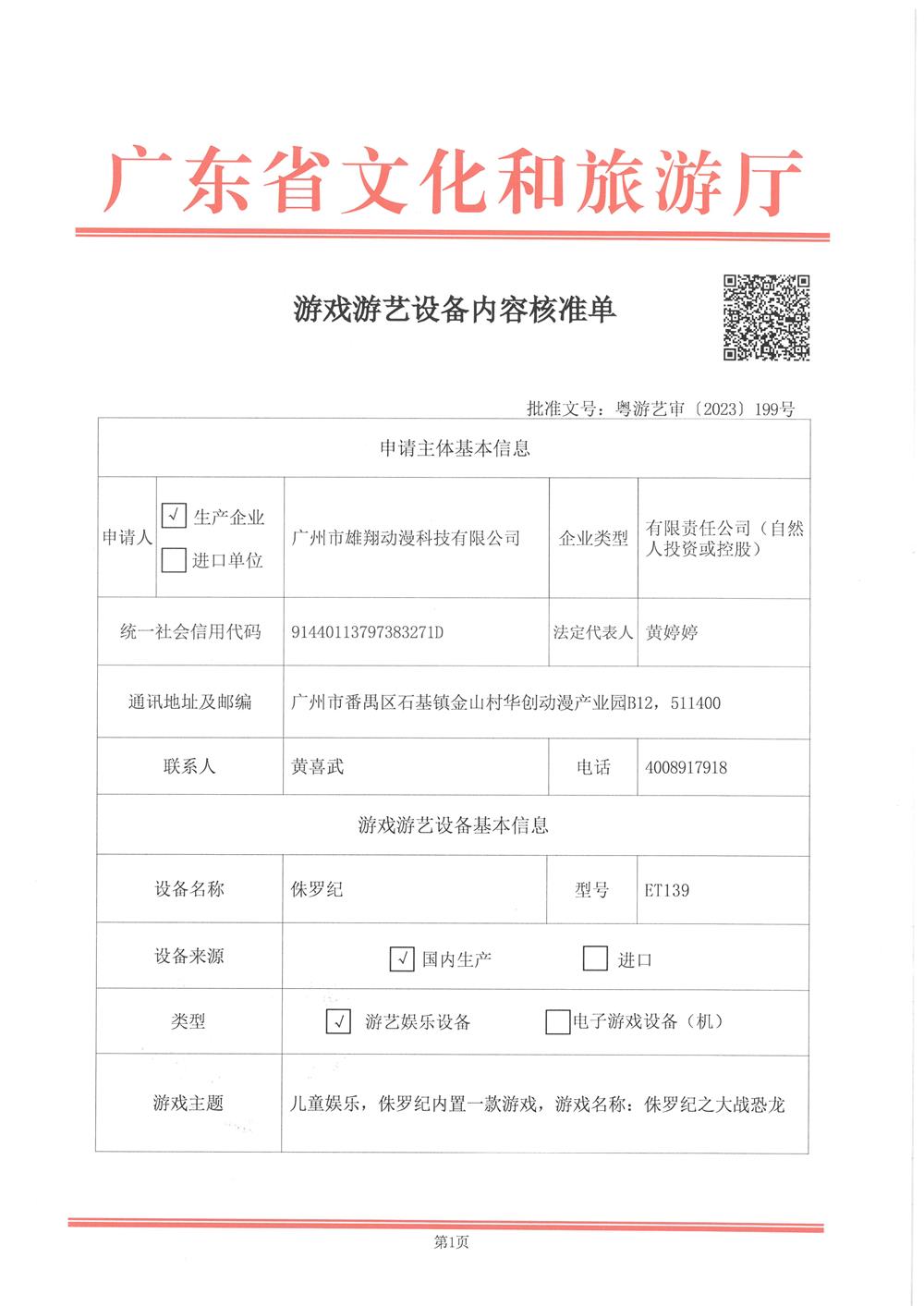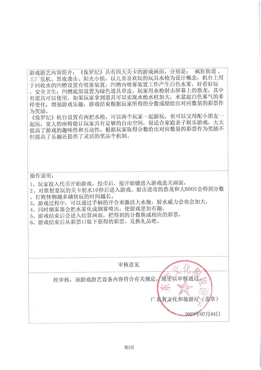 侏罗纪 粤游艺审(2023)199号