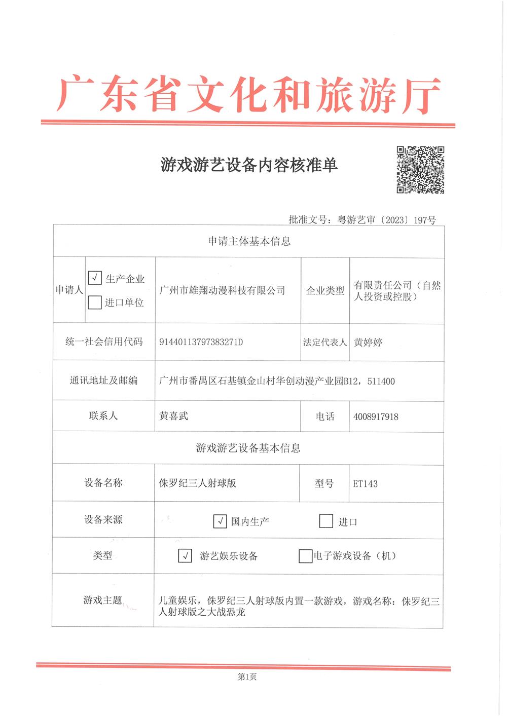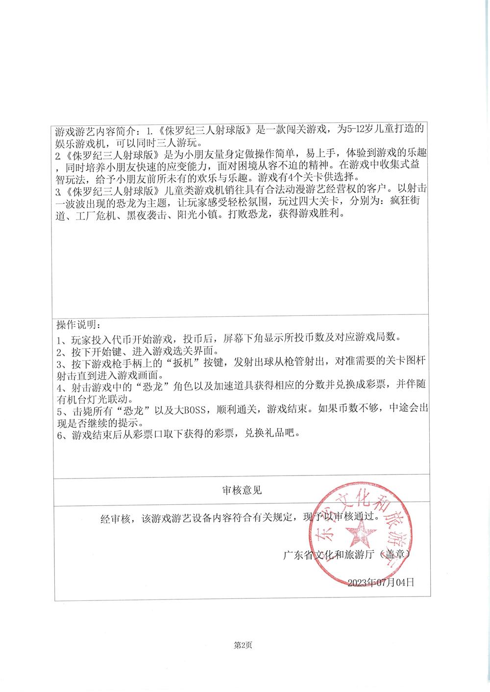 侏罗纪三人射球版 粤游艺审(2023)197号
