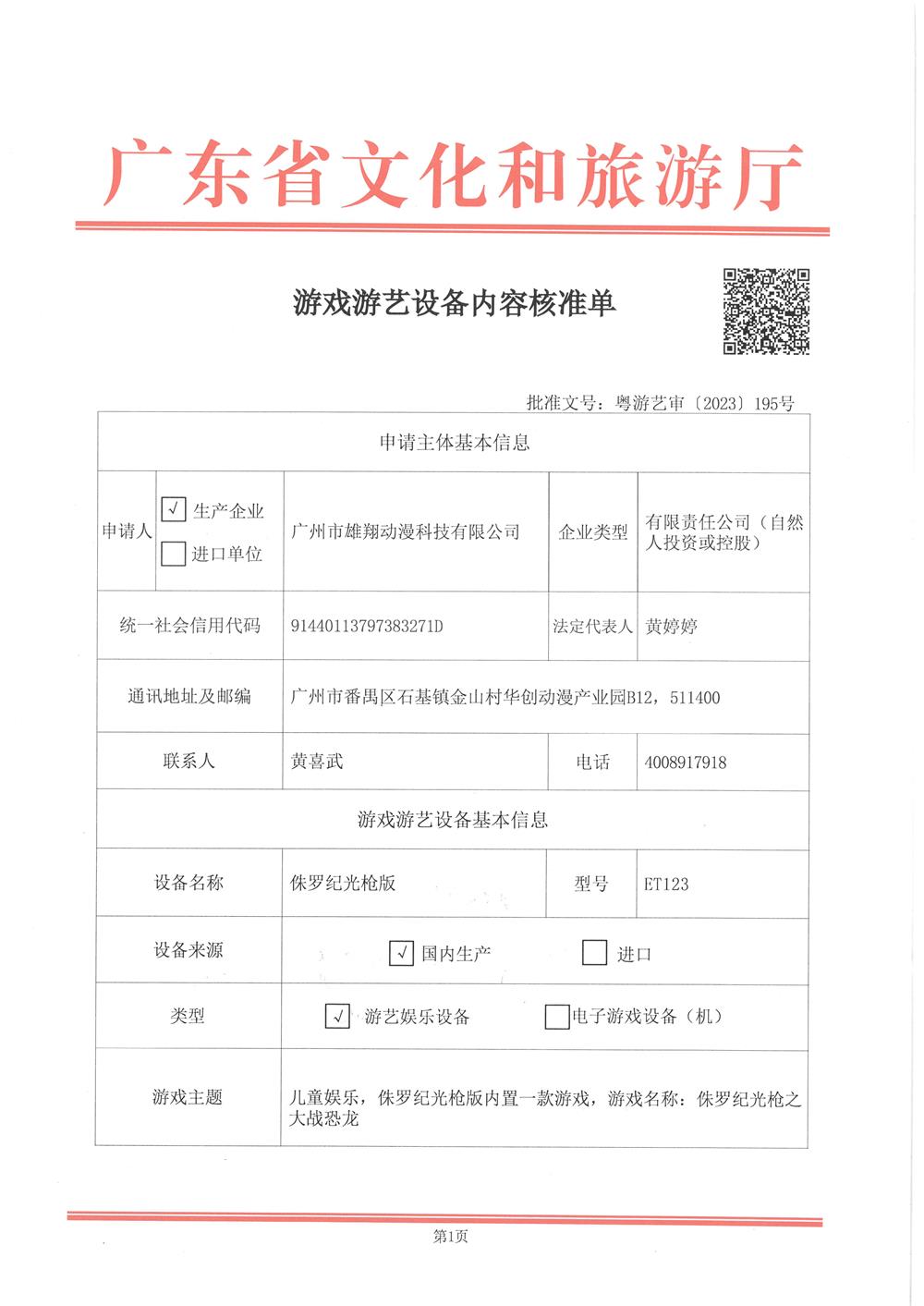 侏罗纪光枪版 粤游艺审(2023)195号