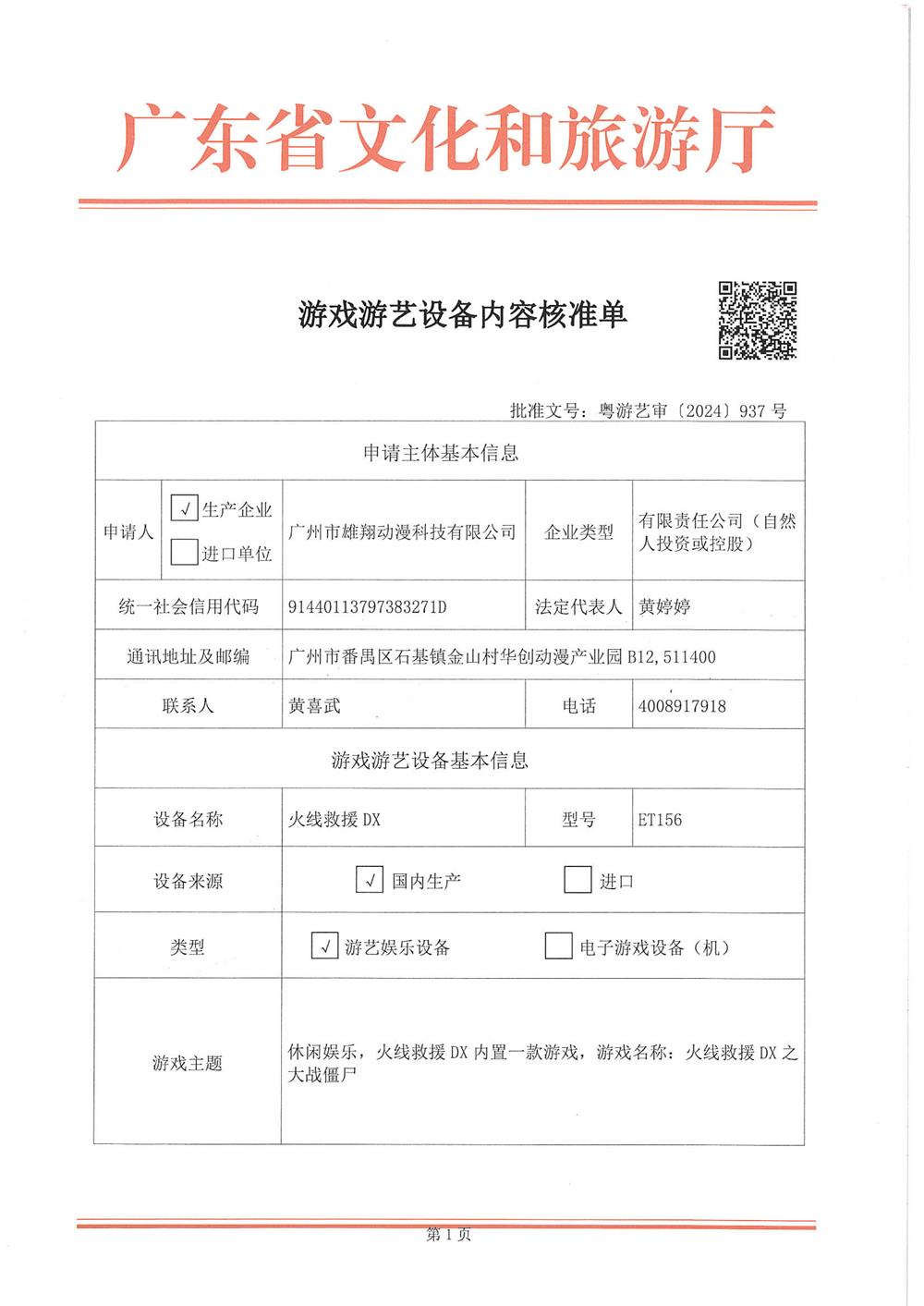 火线救援DX-粤游艺审〔2024〕937号