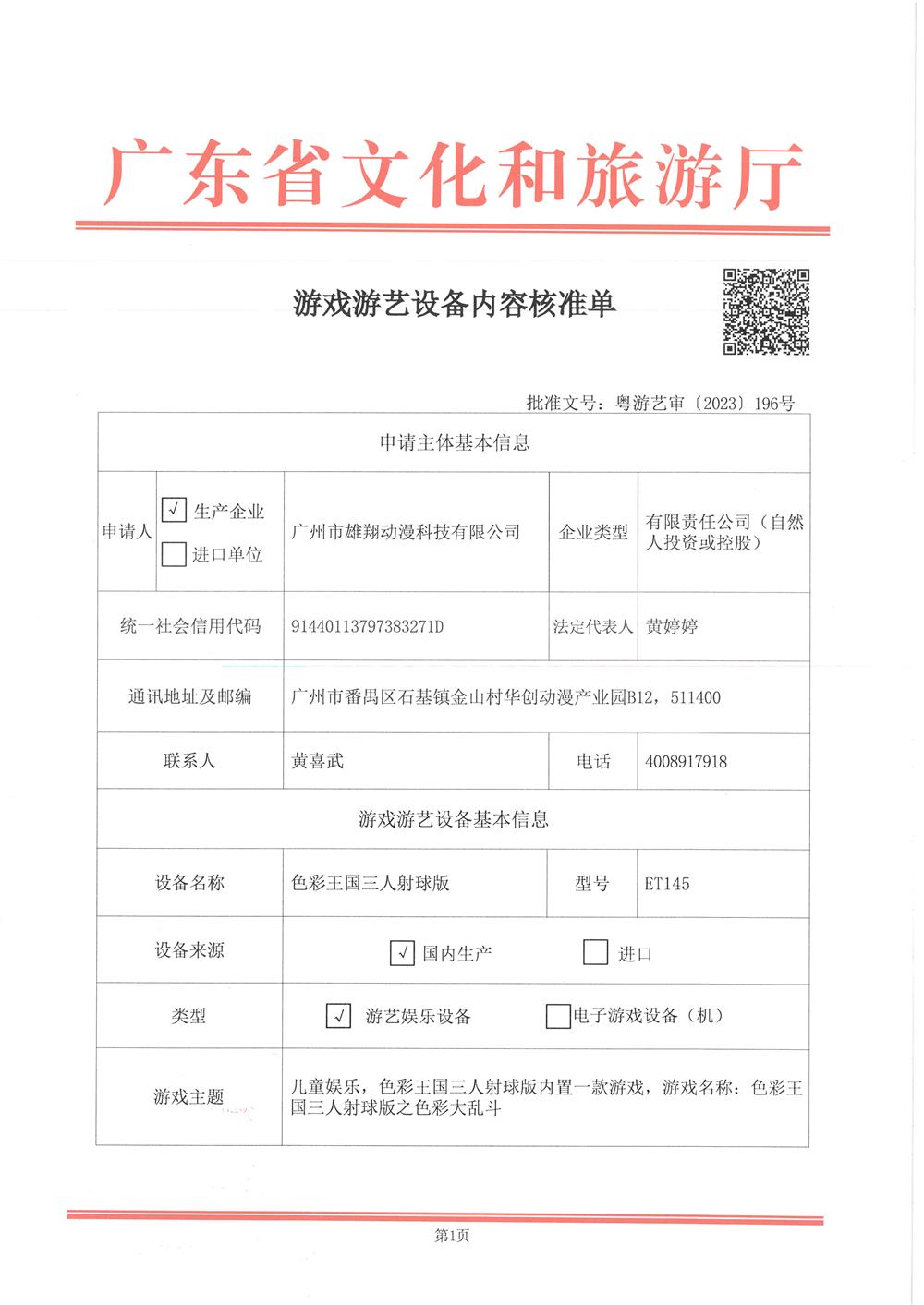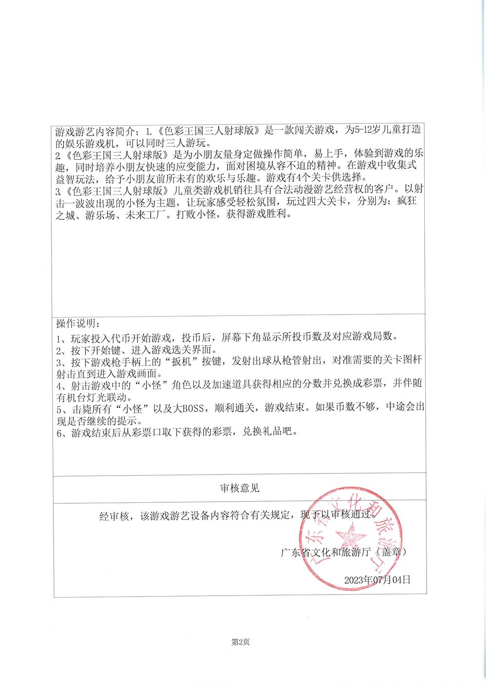 色彩王国三人射球版 粤游艺审(2023)196号